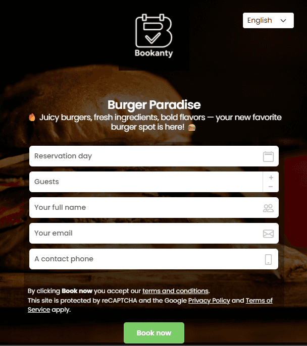 Bookanty’s cloud-based booking platform helps you fill tables faster, reduce no-shows, and delight diners with instant confirmations.