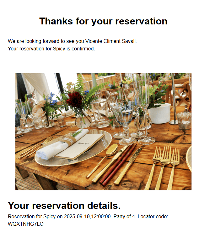 Send instant booking confirmations by email—cutting no-shows and keeping guests informed.